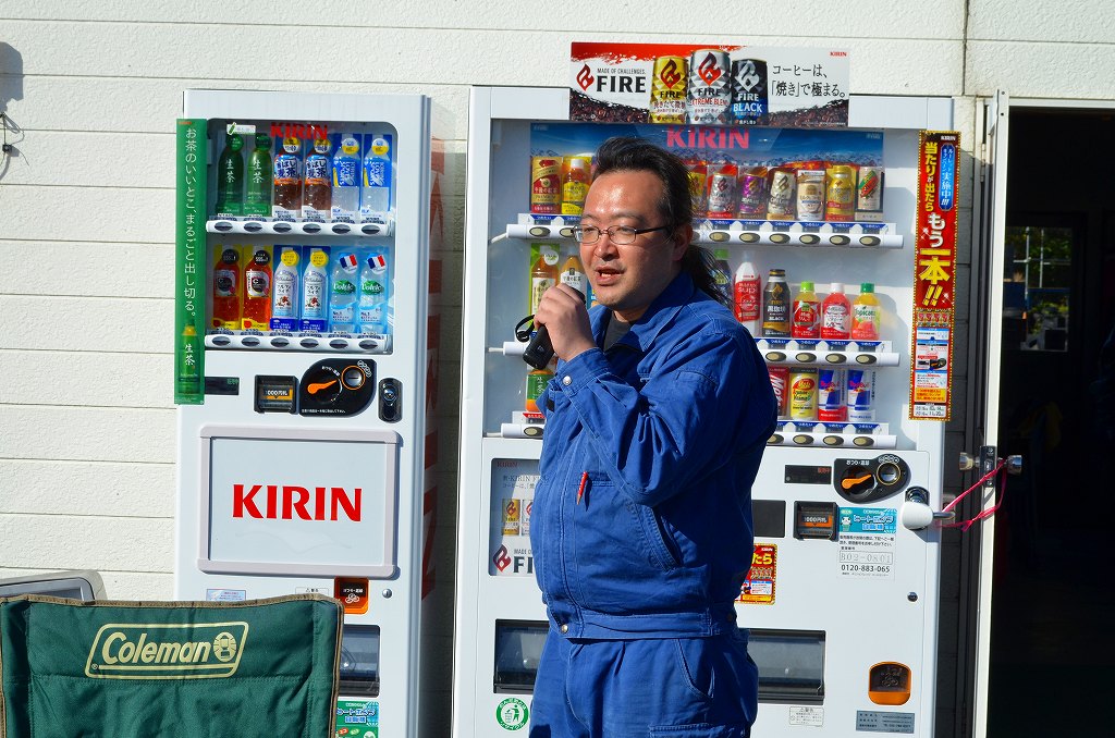 事前エントリーで21台超えれば出る予定だった「宮城風芋煮汁」こそ出せなかったものの、カフェですから缶コーヒーは出ましたよー!