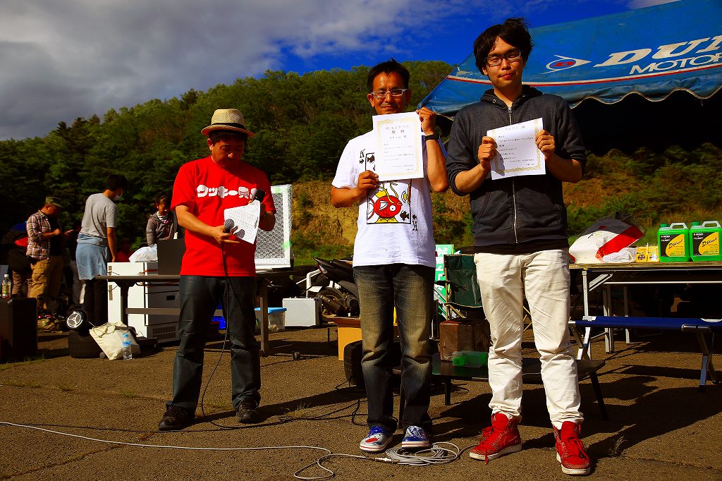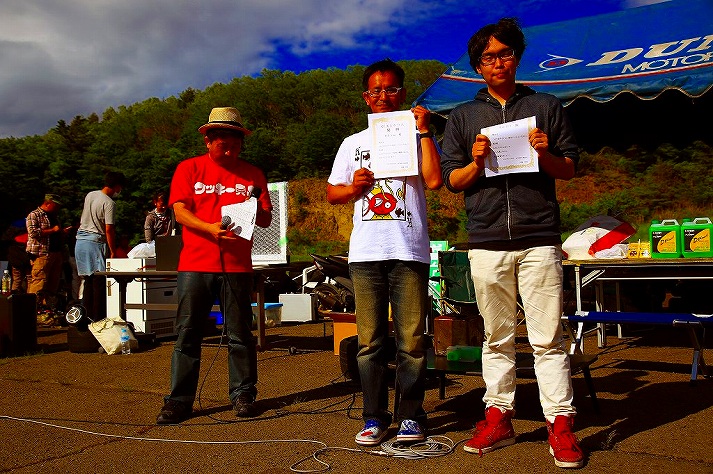 「今日は大人げないパンチパーマもいないしな~」(実行委員長談)と、すっかりウキウキゴキゲンモードで優勝モードに入ったaquが格の違いを見せつけ毎ヒートブッチギリのヴィクトリーランで文句無しの優勝!