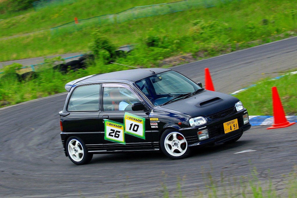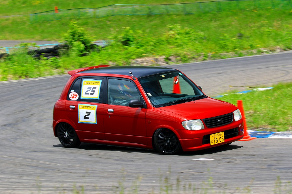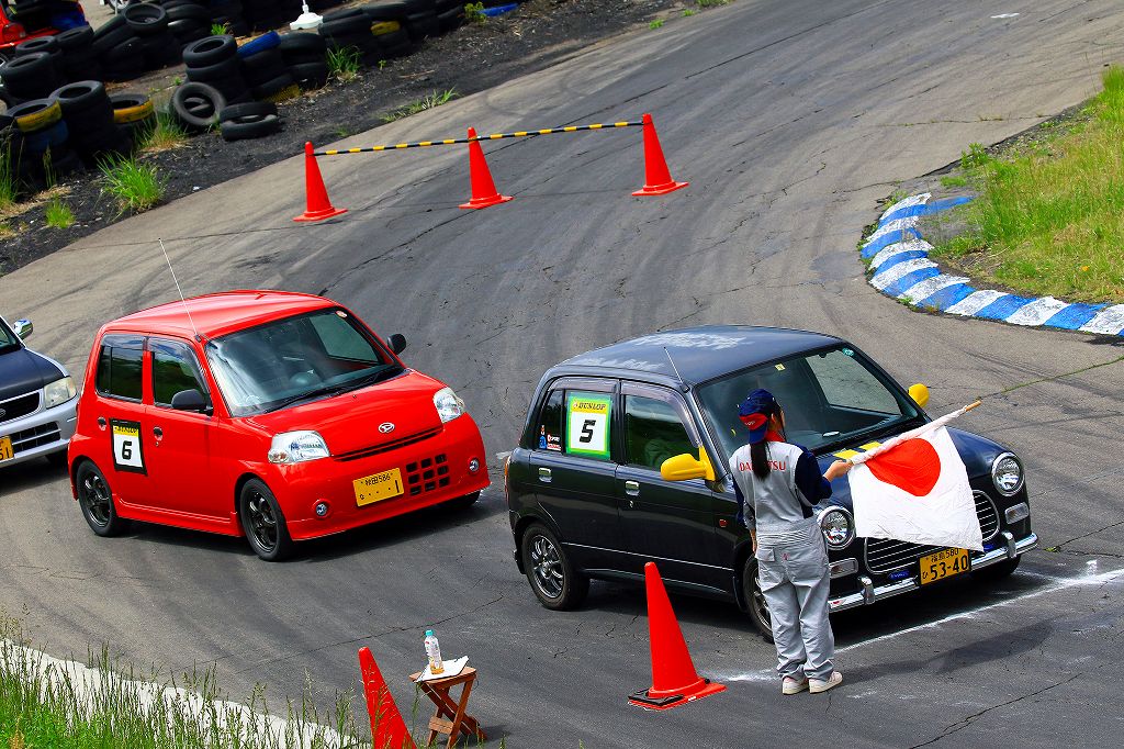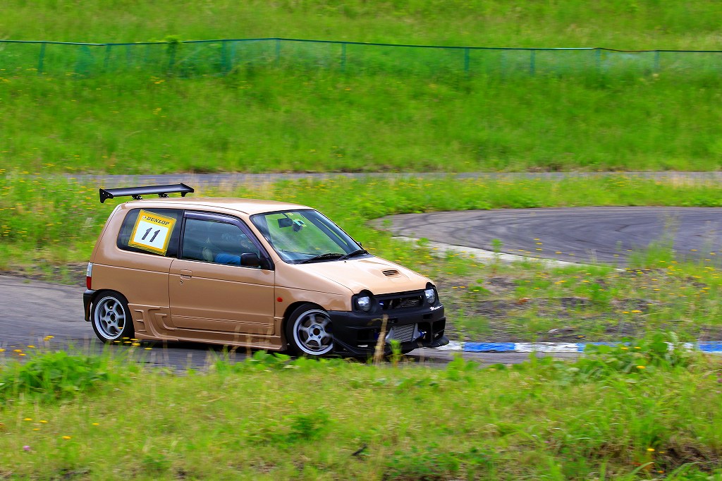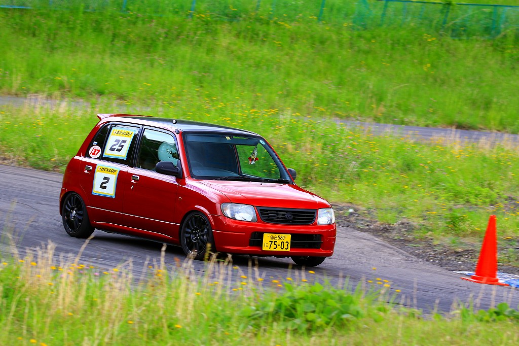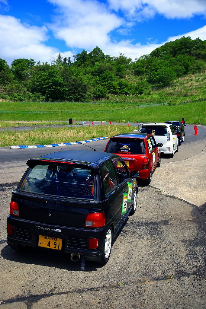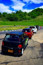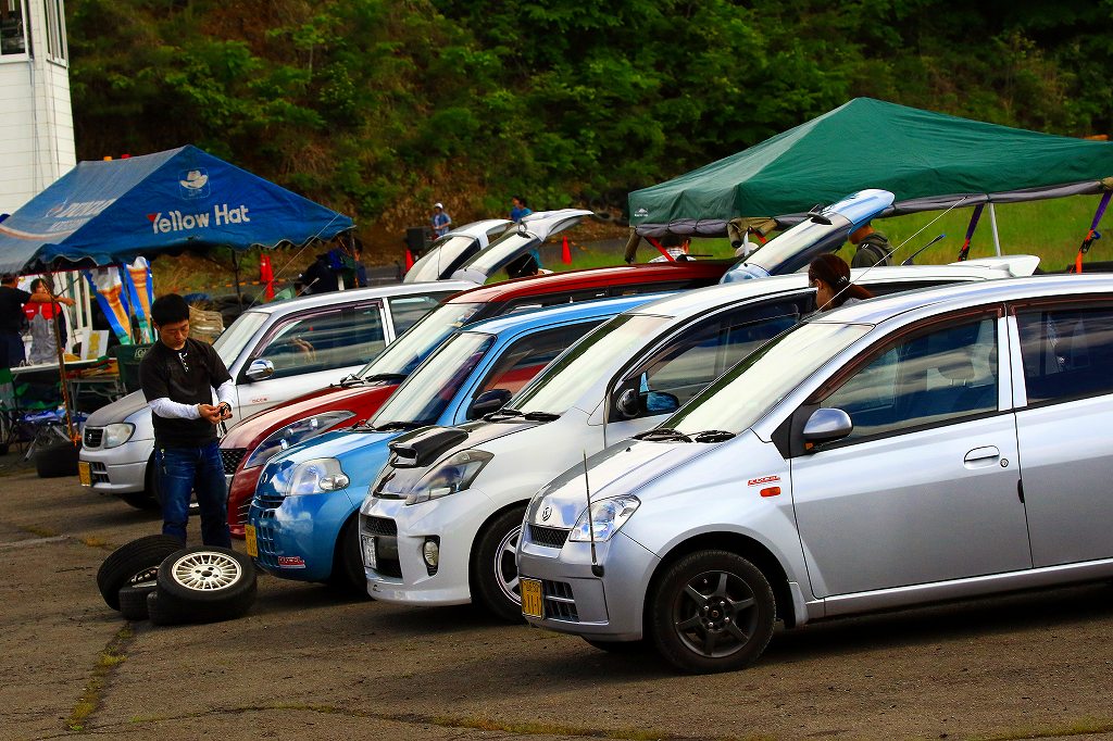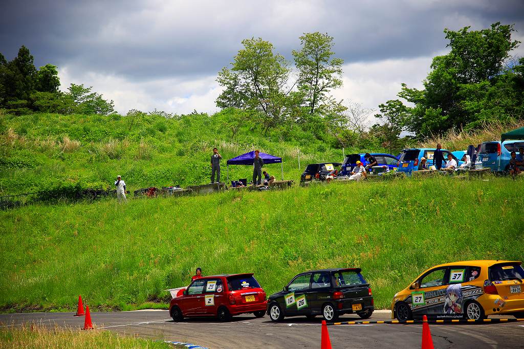今回はLクラスと並びおーとま!クラスも6台エントリーの大盛況!熱いバトルはフィットを駆る関勝哉と36アルトバンを駆るおんちゃんの激しいトップ争い。