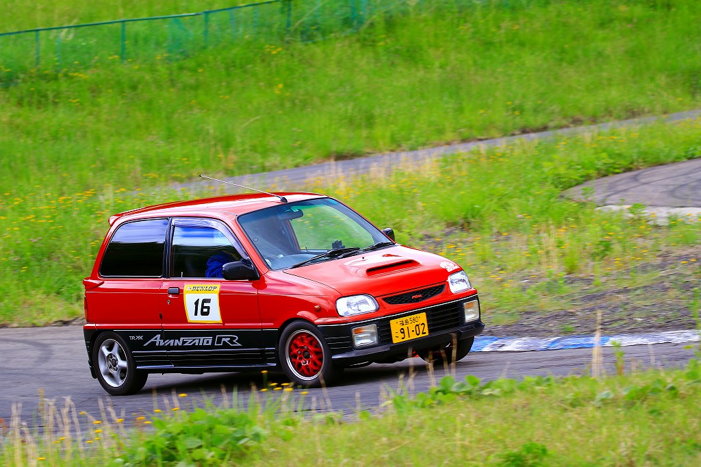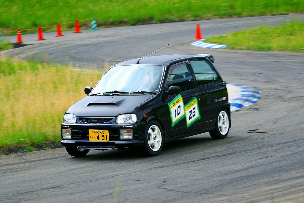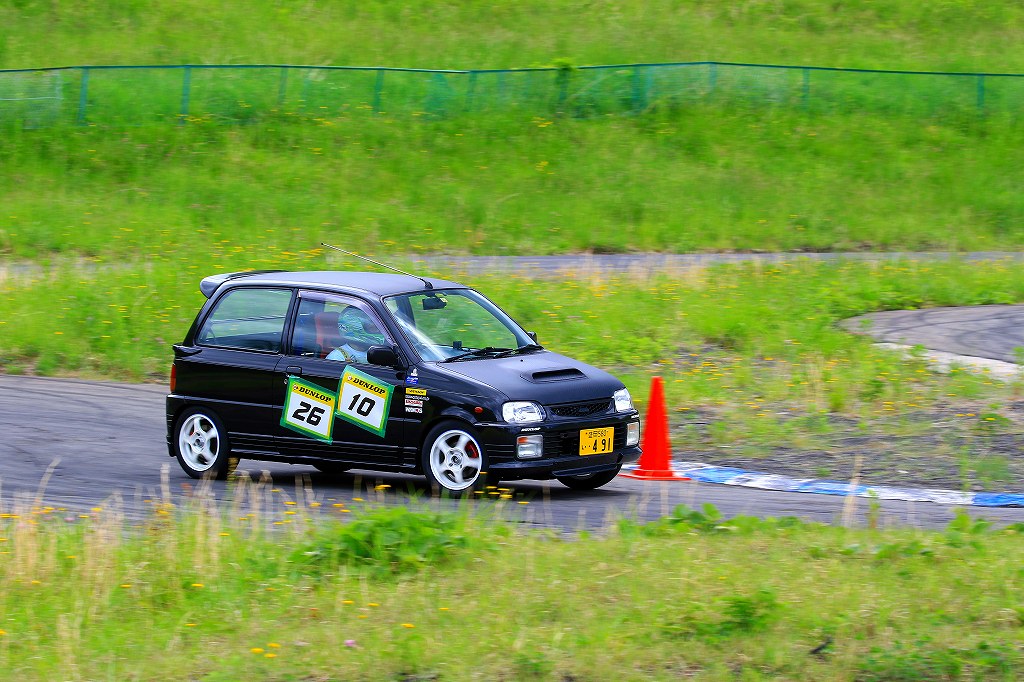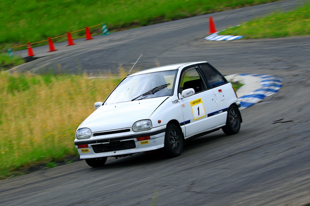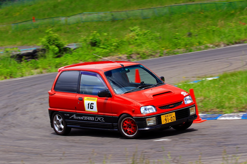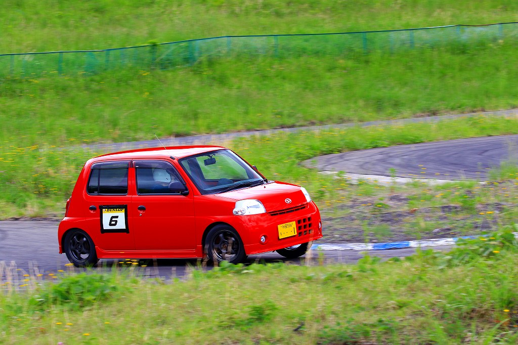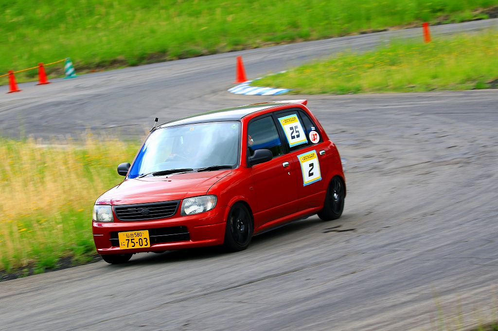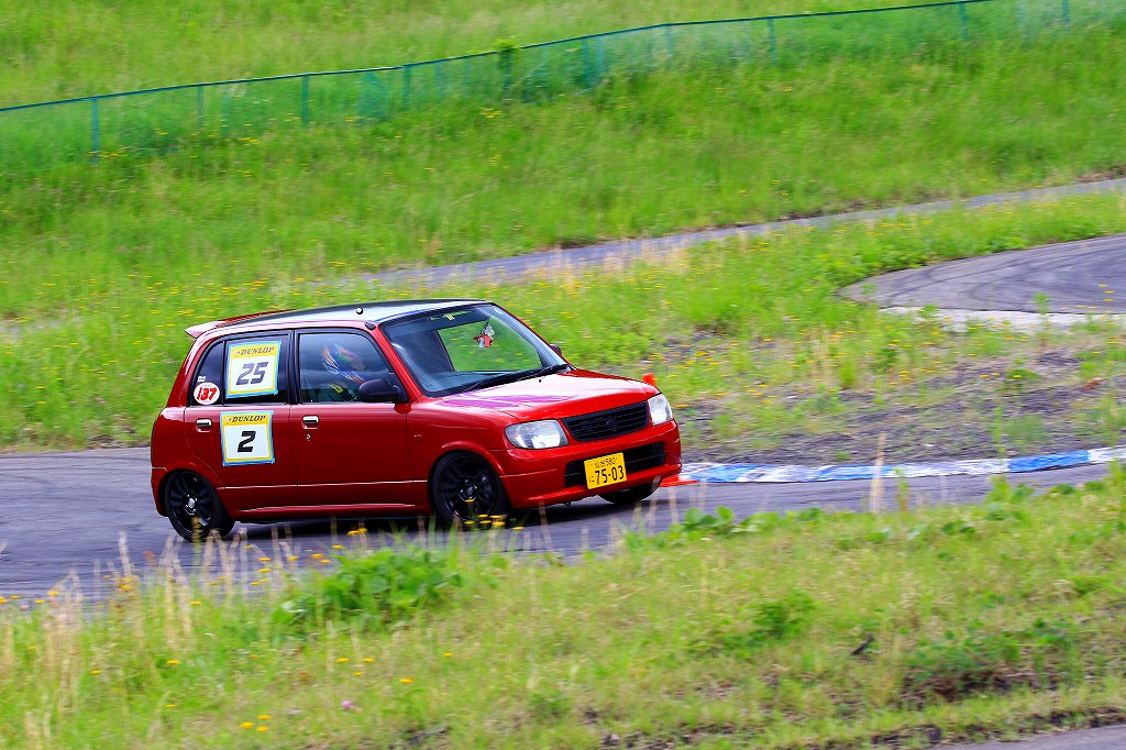 今回はLクラスと並びおーとま!クラスも6台エントリーの大盛況!熱いバトルはフィットを駆る関勝哉と36アルトバンを駆るおんちゃんの激しいトップ争い。