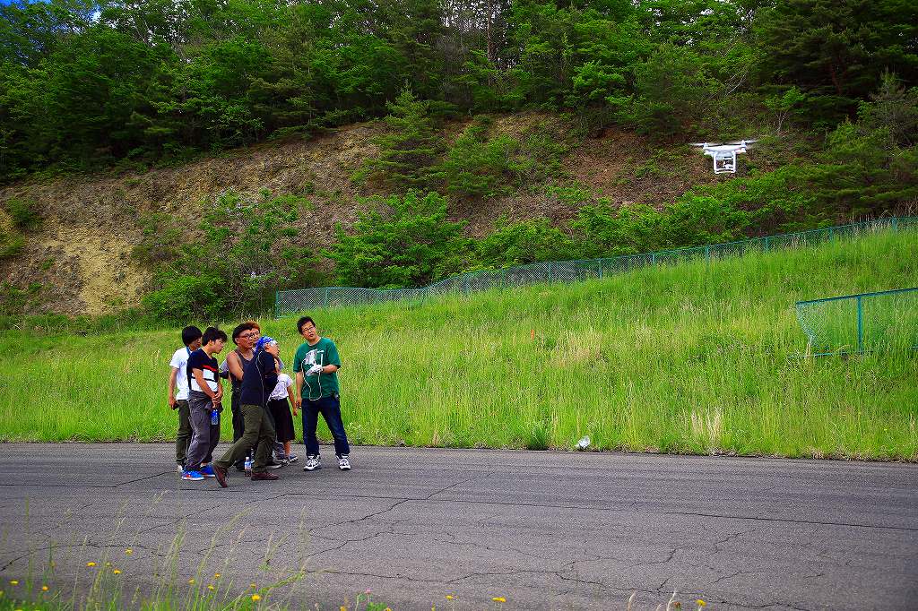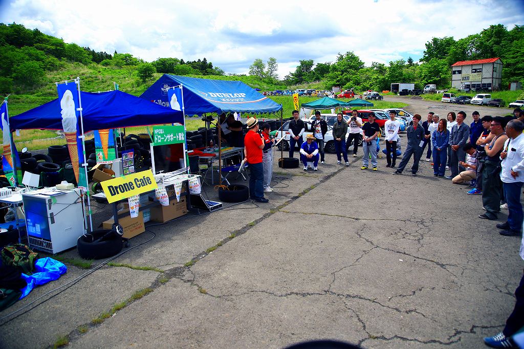 当日はNPO法人ドローンサポート東北がソフトクリームの出店を開いたほか、撮影飛行や昼休みにはデモ飛行、体験操縦会も行いました。