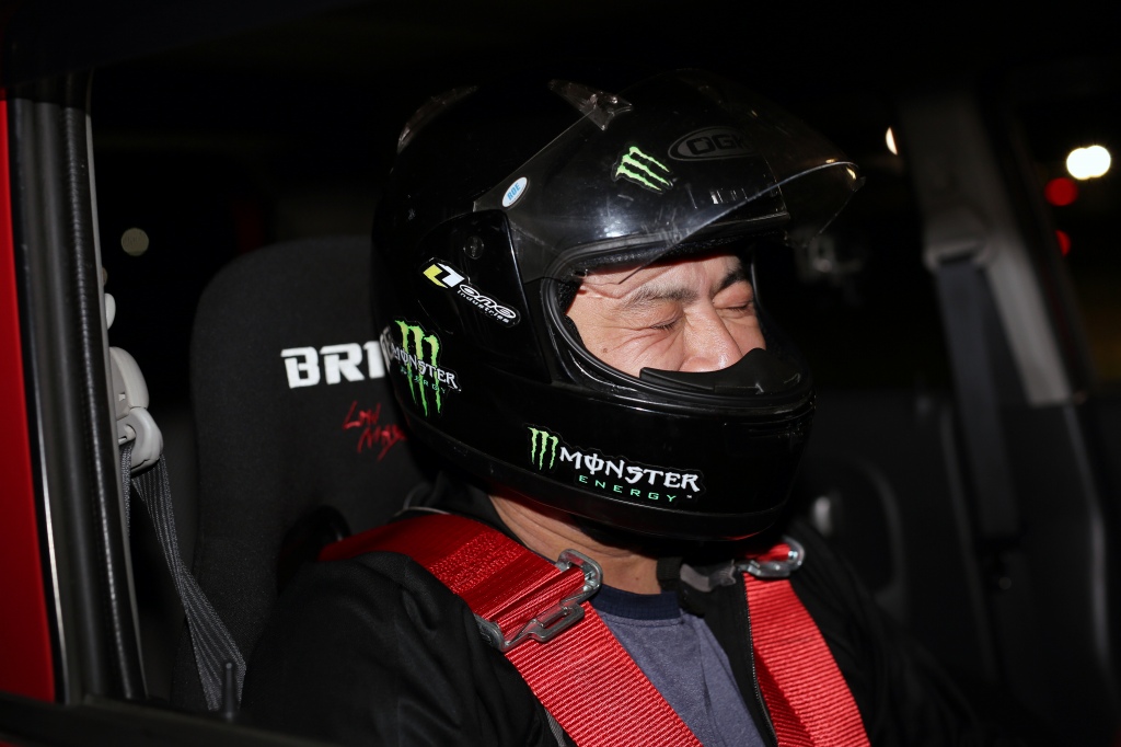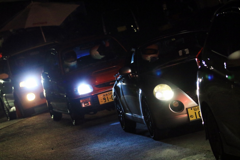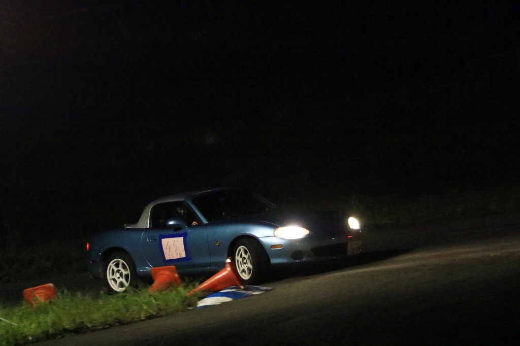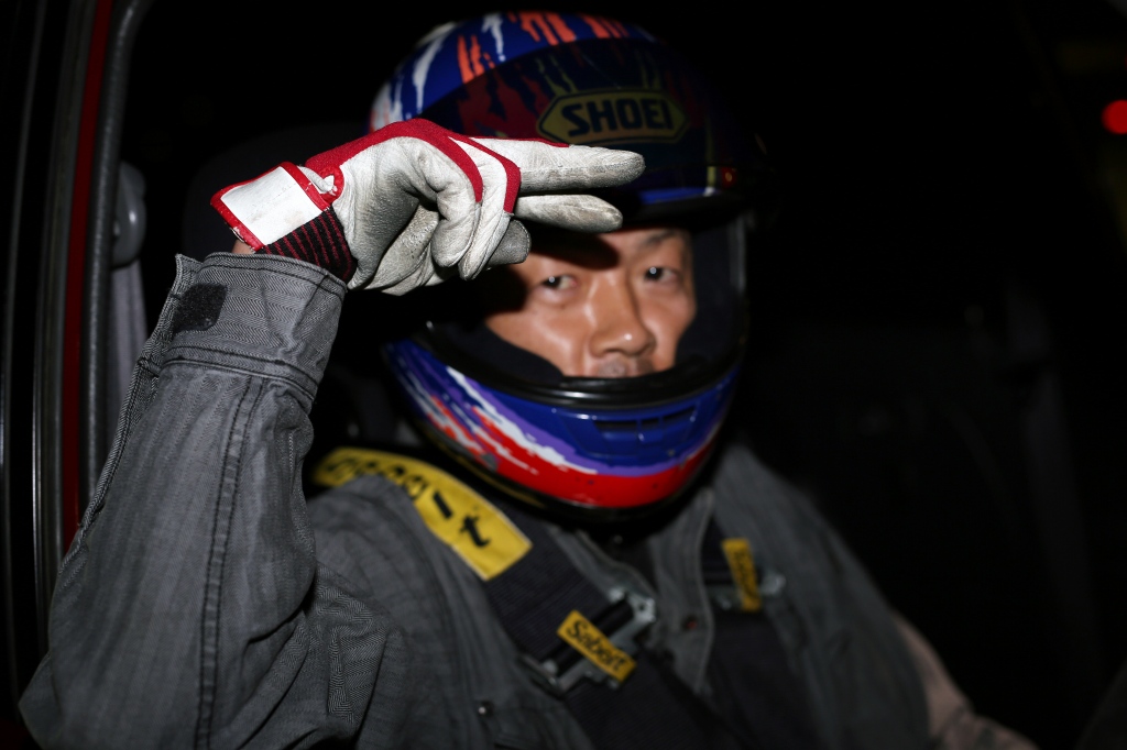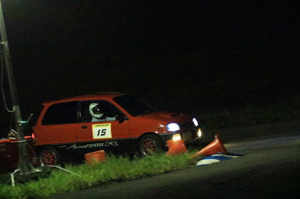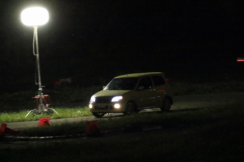 前回までサスセッティングに苦しんでいたカプチーノの三浦勇紀(1番左)、直前のサーキット走行でクラッシュというトラブルを乗り越えたか、それとも吹っ切れたか、第1・第2ヒートのデイステージでのブッチギリタイムで、コンスタントに好タイムを積み上げた2位ぐりふぃん(左から2番目)を振り切って優勝!