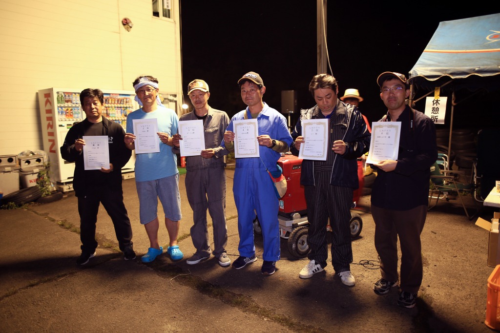 ダイハツチャレンジカップ以来の歴戦の古強者、shige別格(1番左)が危なげなくブッチギリで優勝!それは別格として2位のtoppo、3位のぴーくんの2位争いも素晴らしく、第2ヒートで好タイムを出したtoppo(左から2番目)の勝ち!