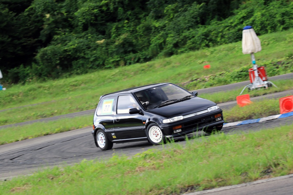 今回ホンダGA2シティの一本足の流儀さんが1台のみの出走。GA2はジムカーナでも仕上がると速い車なのでどのクラスにするか悩みどこですが、発売が1986年と古いのでDCTMではマニアッククラス!