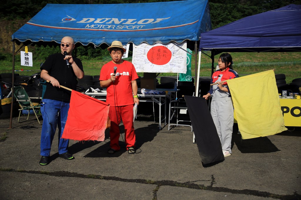 開会式に登場したスタッフは、今年から復帰しております実行委員長の兵藤忠彦(713R's GARAGE・左)