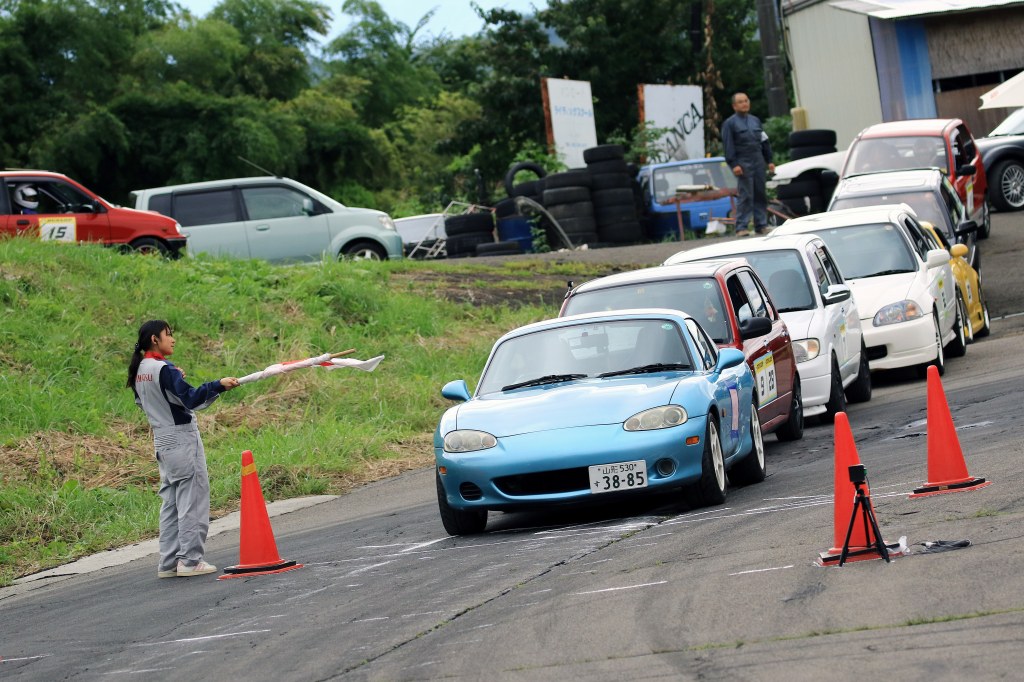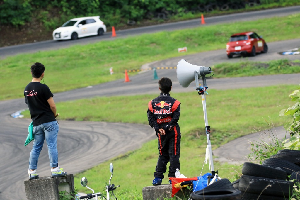 前回第1戦は「いかに32スイフトスポーツとはいえ、どノーマルではええっちゃクラスはさすがにダメ!」とGA1クラスでの参戦となり、その通りの結果になったShimさん(1番左)。今回は足回りなどセッティングしてきて見事優勝!次からギリギリはええっちゃ!かな?