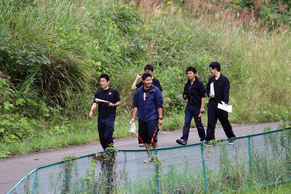 正座してない人が1人?チャンプK(左から2番目)が「俺のパンチパーマは地にはわせねーよ!」と意地を張っての正座拒否!